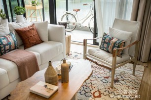 業(yè)主夫妻崇尚自由不羈的生活方式,對家居設(shè)計(jì)很有自己的想法與品味,本身即有許多風(fēng)格十分鮮明的家飾與生活物件;尤其是過去曾有藝?yán)裙ぷ鞅尘暗呐魅?,特別偏好帶有復(fù)古韻味、色彩繽紛、異國情調(diào)的元素,設(shè)計(jì)者于是在空間中消弭多余色彩及線條,藉以烘托出家具、軟件的本質(zhì)韻味??蛷d裸天花簡單以木質(zhì)收邊修飾,搭配表面具天然跡痕的魚骨拼實(shí)木地坪,為居家平添幾許仿若來自北歐的原始鄉(xiāng)野氣息。