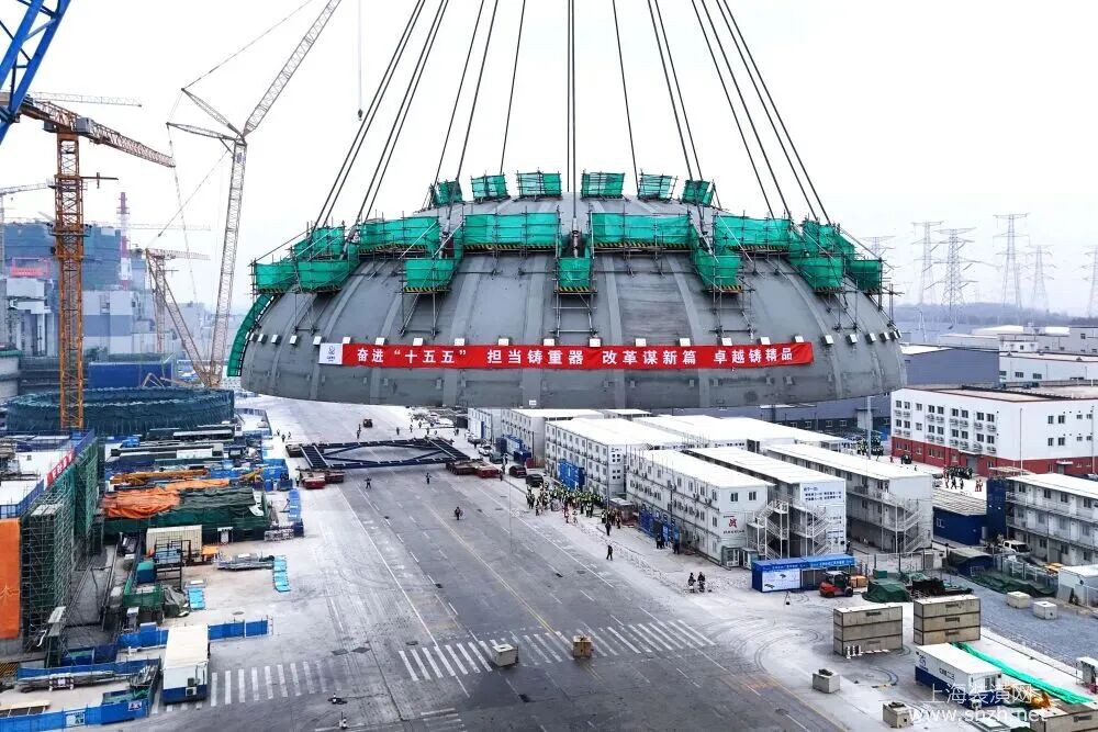 2026年2月10日在遼寧省葫蘆島市拍攝的徐大堡核電站1號(hào)機(jī)組核島鋼制安全殼頂封頭吊裝作業(yè)現(xiàn)場(chǎng)(無(wú)人機(jī)照片)。新華社發(fā)