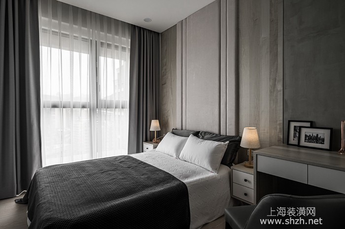 睡眠區(qū)的重點是安靜和放松,所以更適合米色、奶油色、灰藍(lán)、淺卡其這類平和色調(diào)。床品也盡量避免過于跳躍的高對比圖案,柔和一點更利于入睡。