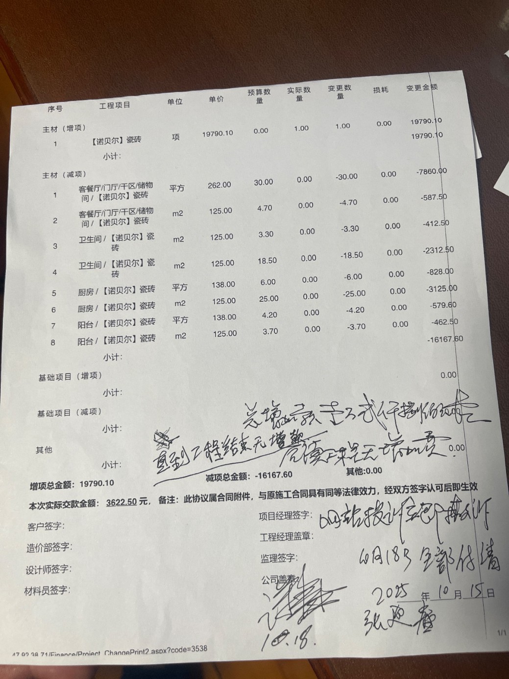 | 裝修面積 | 105m2 | 投訴人手機 | 1582133**** | 被投訴人手機 | 1368164**** |