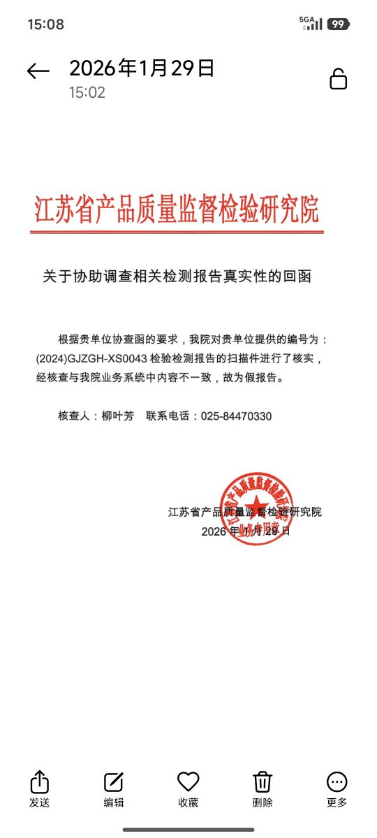 已聯系被投訴人,被投訴企業(yè)闡述,根據業(yè)主要求已再次送檢,等待檢驗結果 。