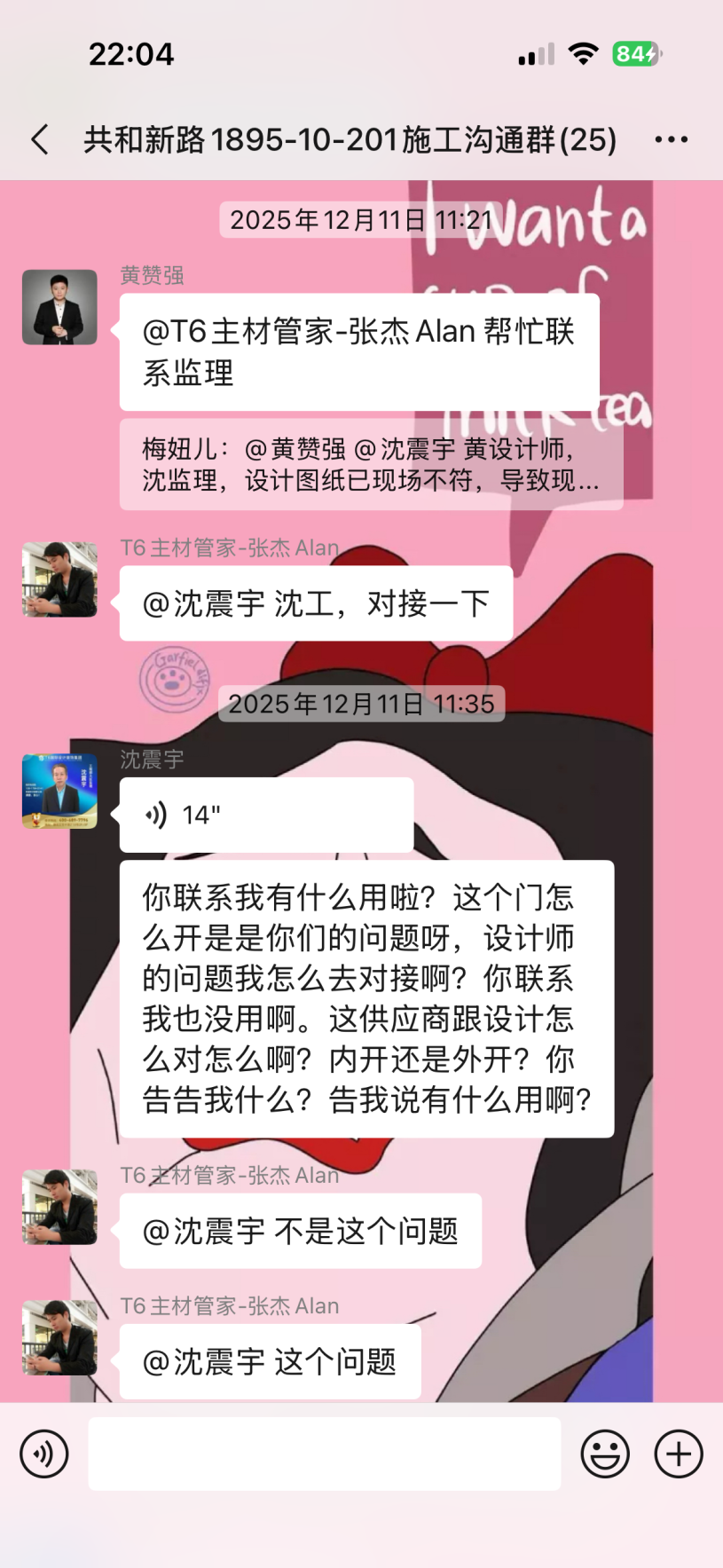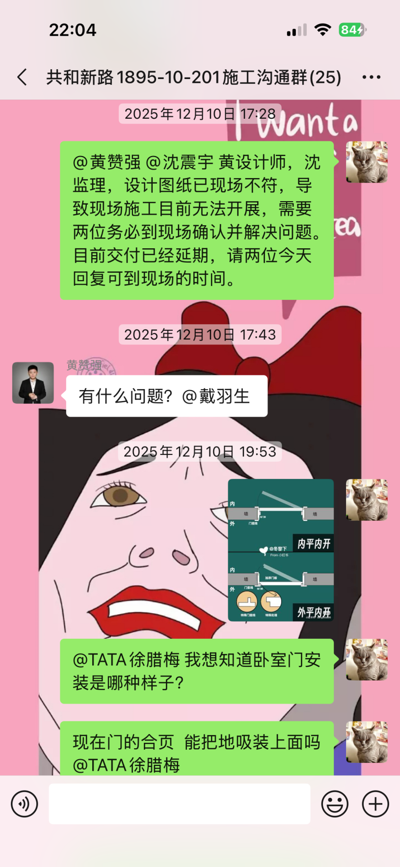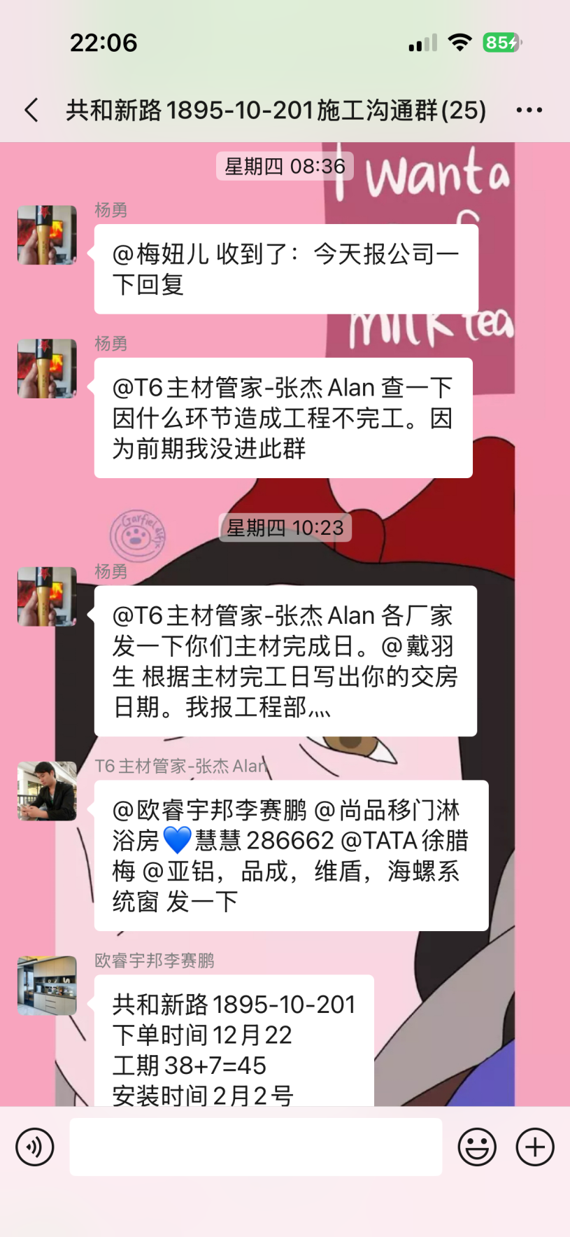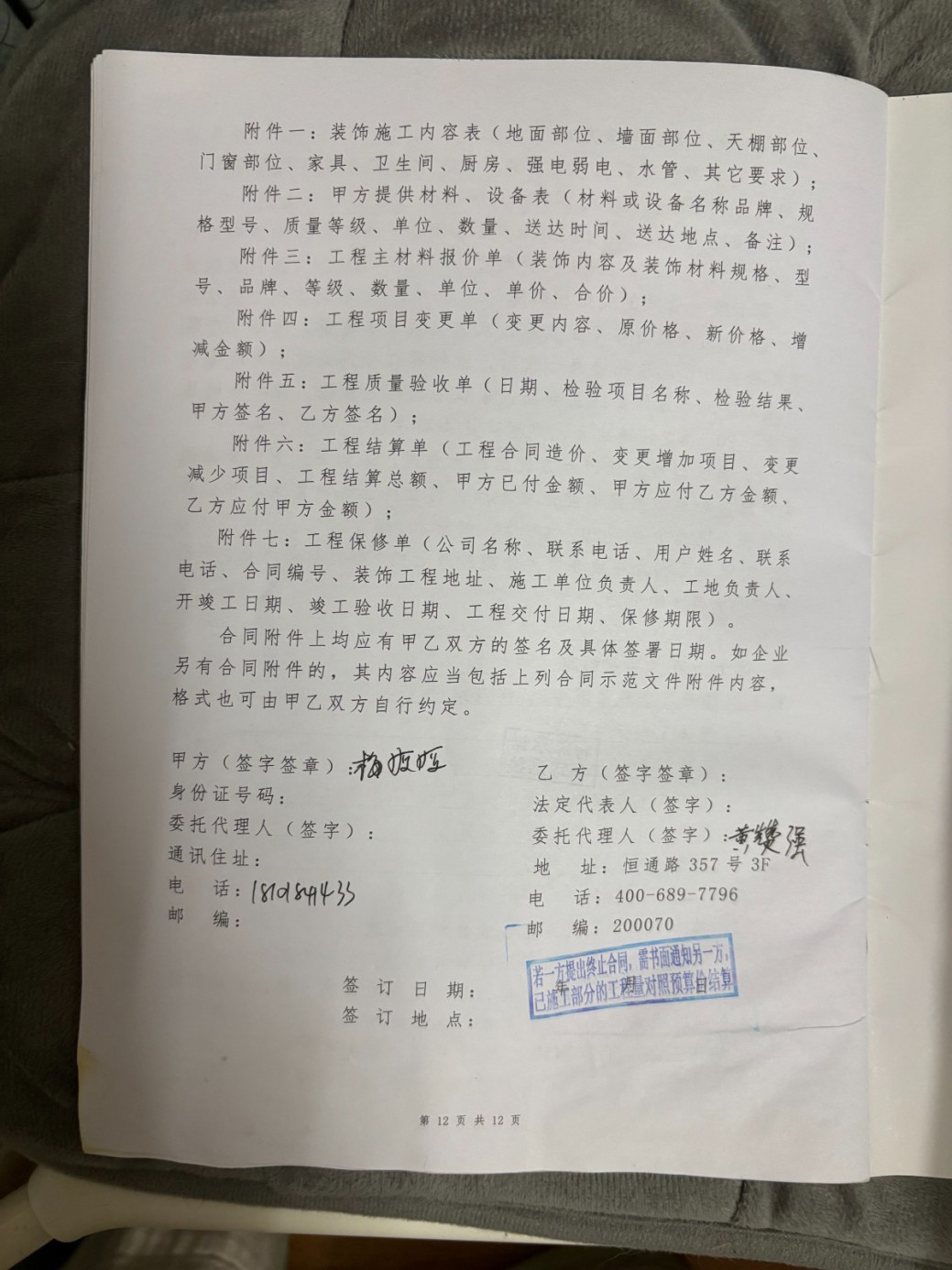 截至目前仍未完工,主材備貨也未按合同執(zhí)行,已嚴重逾期。本人多次發(fā)催告函、在工作群溝通,對方拒不聯(lián)系、拒不協(xié)商,持續(xù)消極違約。同時施工過程中,該公司違規(guī)操作將樓上樓板打穿,雖已修復(fù),但過程中推諉責(zé)任,且修復(fù)時間嚴重逾期。