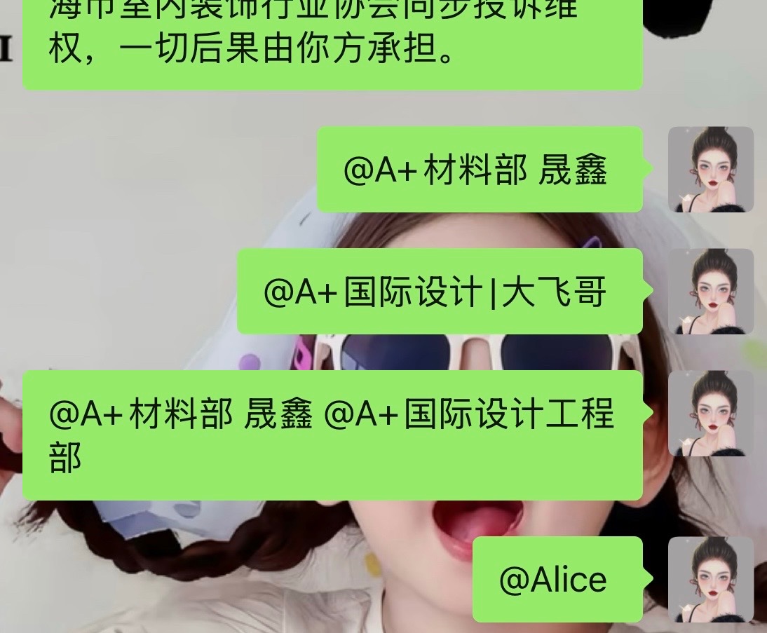 因全屋定制已入住,無(wú)法接受破壞性維修,我提出一次性現(xiàn)金賠償6000元的合理訴求,并在工作群正式告知、艾特負(fù)責(zé)人,對(duì)方全員不回復(fù)、不處理、惡意冷處理。