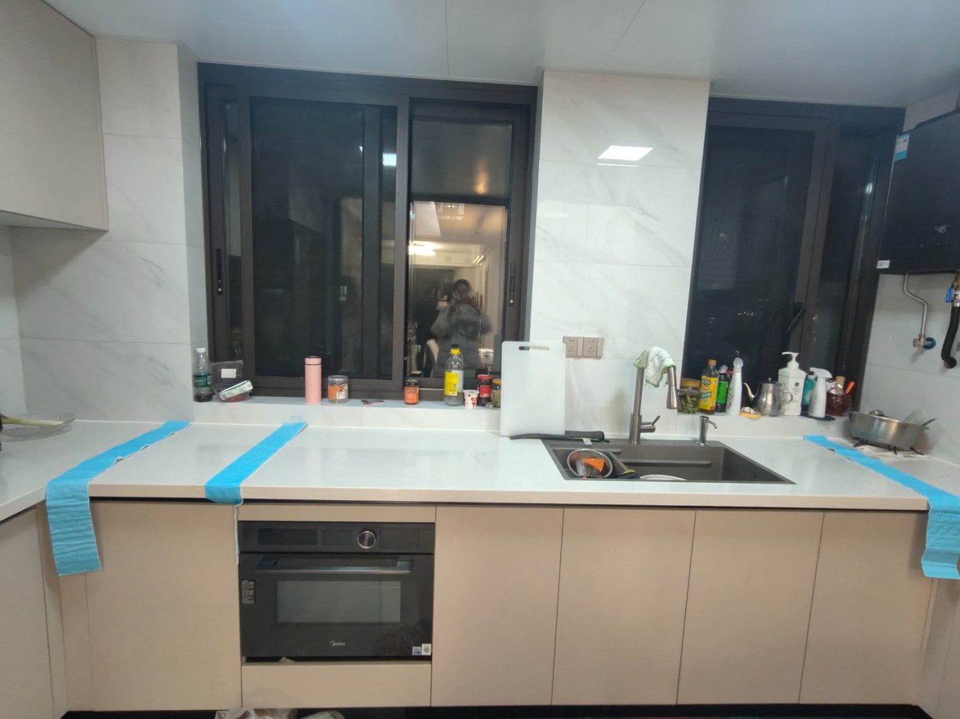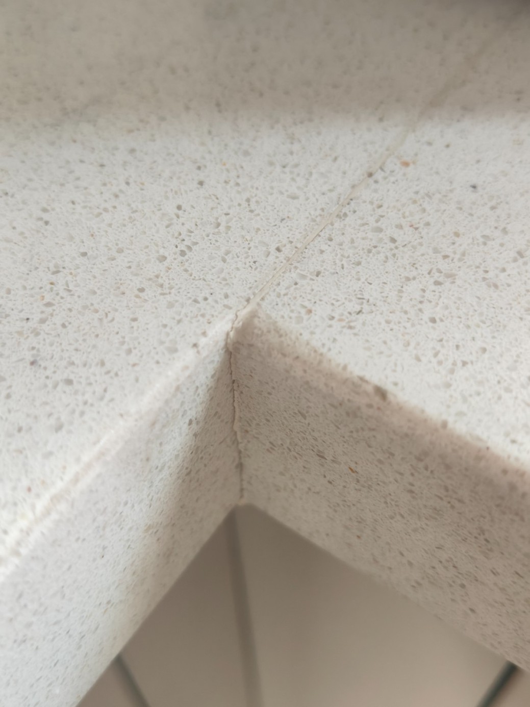 4.臺面三條拼接縫全部開裂、其中一條縫隙師傅已經(jīng)將柜體拆除重新維修過一次(維修時本人在網(wǎng)上和實體做柜子師傅詢問并做了很多攻略,是什么原因?qū)е屡_面開裂,并告知安裝及項目負(fù)責(zé)人說明,是不是柜體沒安裝好,或者支腿不平等,如果有此情況一次到位要求全部整改一下,避免下次開裂,裝修公司回復(fù) 已檢查沒有我說的上述問題,并說這次組裝好就不會再開裂了),一個月內(nèi)又二次開裂,導(dǎo)致無法正常使用,屬于明顯質(zhì)量問題,要求更換臺面,柜體重新組裝。(廚房臺面2025年9月1日使用,2025.11.3日開裂,2025.11.8日拆除修復(fù);2025.12.25日老地方再次開裂;2026.1.7日另一處新的拼接縫開裂;2026.1.31日第三條拼接縫處開裂)全部開裂后,業(yè)主又找了幾個做石頭加工以及櫥柜安裝的師傅上門查看看原因,反應(yīng)結(jié)果臺面裁切有問題,再次組裝依然會裂。