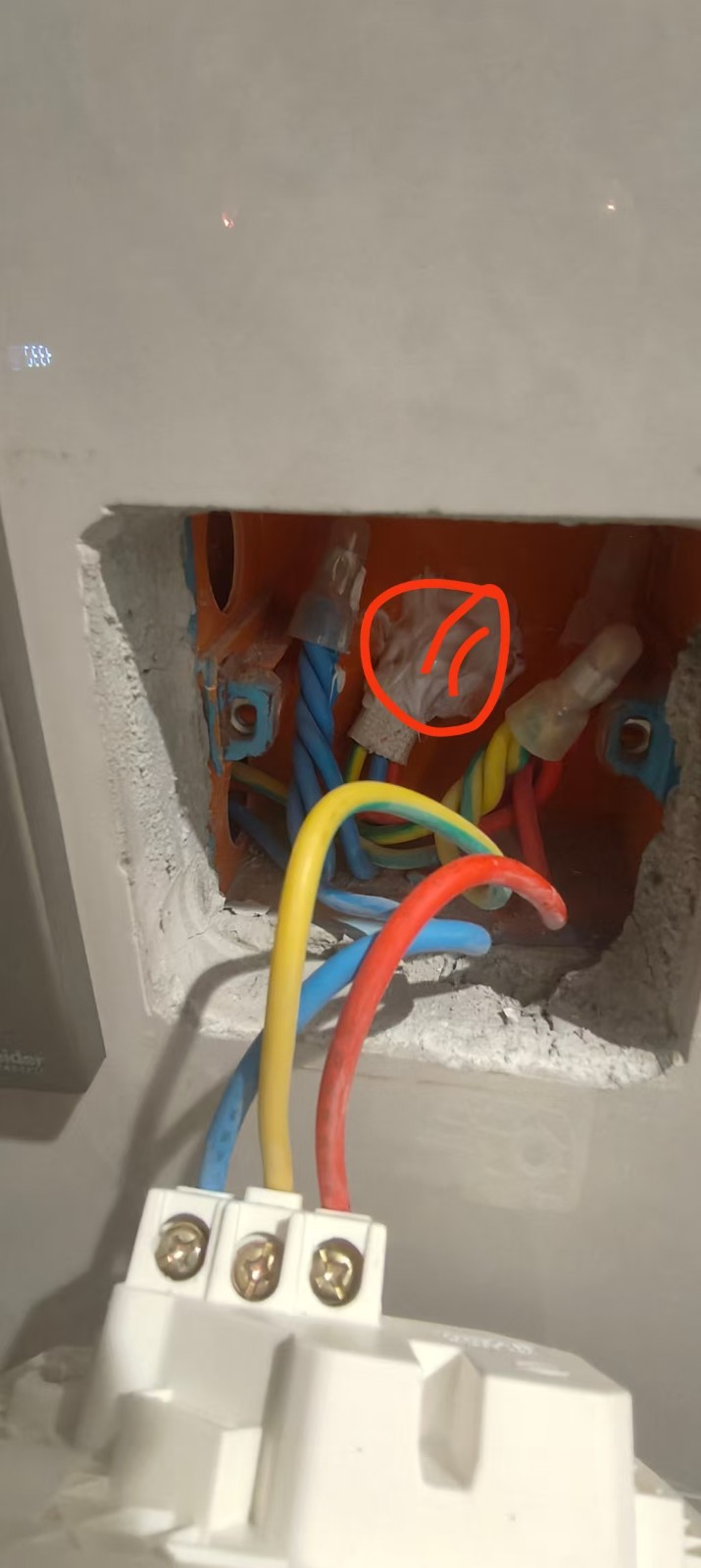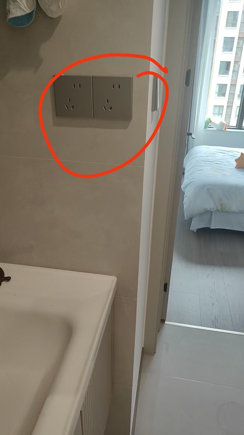 2.洗漱臺旁煙道在施工中開出一個洞,事后隱蔽工程未做處理、未封堵,孔內(nèi)有家用插座電線和插座電線,煙道高溫環(huán)境極易引發(fā)短路、漏電、火災(zāi),存在重大安全風(fēng)險。(項目經(jīng)理解釋他們用的線用大火燒都不會著火)