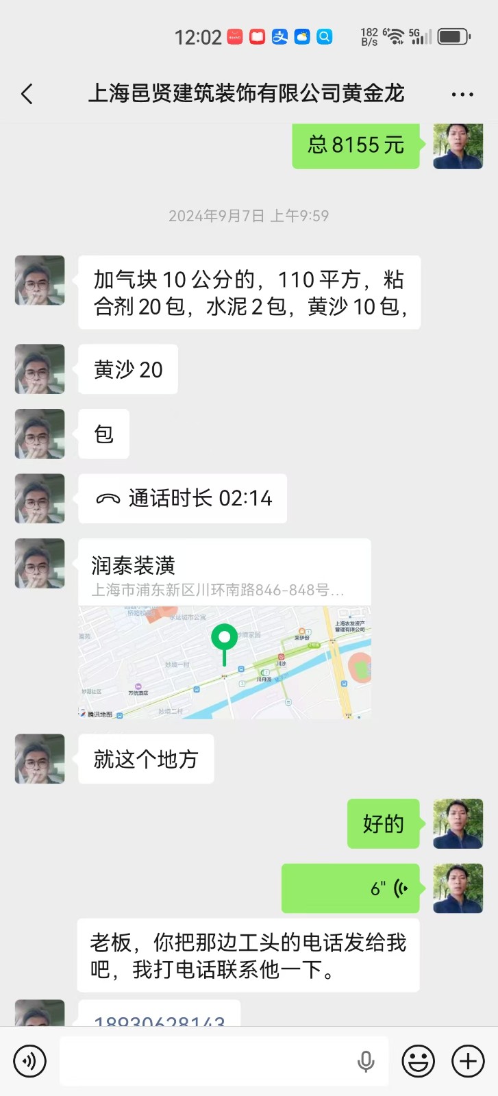 | 裝修面積 | 100m2 | 投訴人手機(jī) | 1580086**** | 被投訴人手機(jī) | 1893062**** |