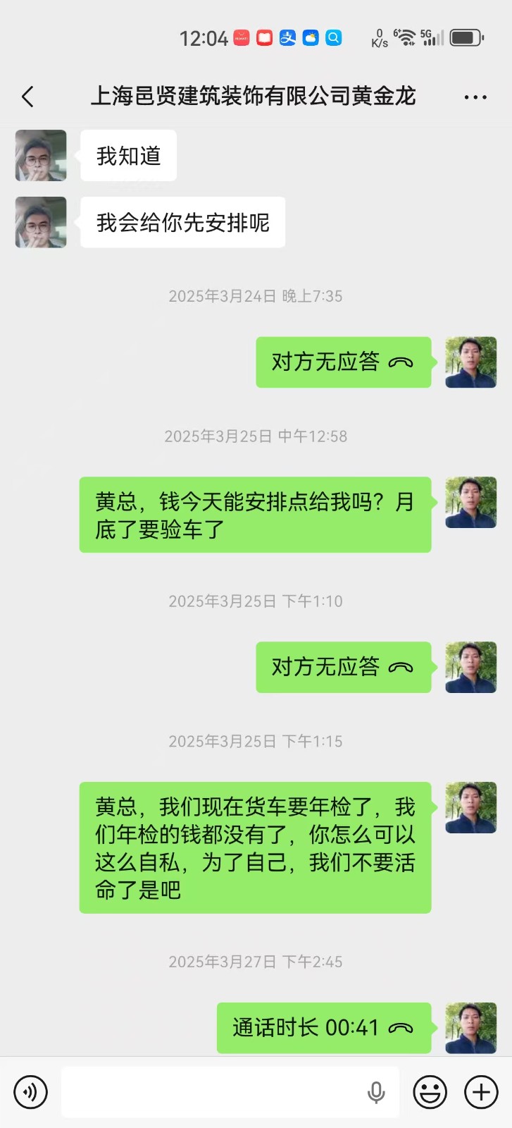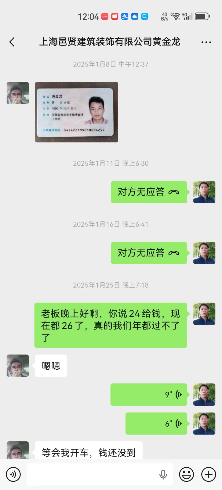 | 投訴類型 | 惡意欠薪 | 投訴人 | 胡** | 被投訴單位 | 上海邑賢建筑裝飾有限公司 |