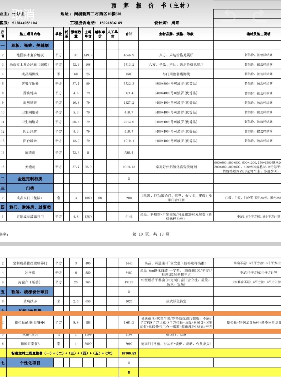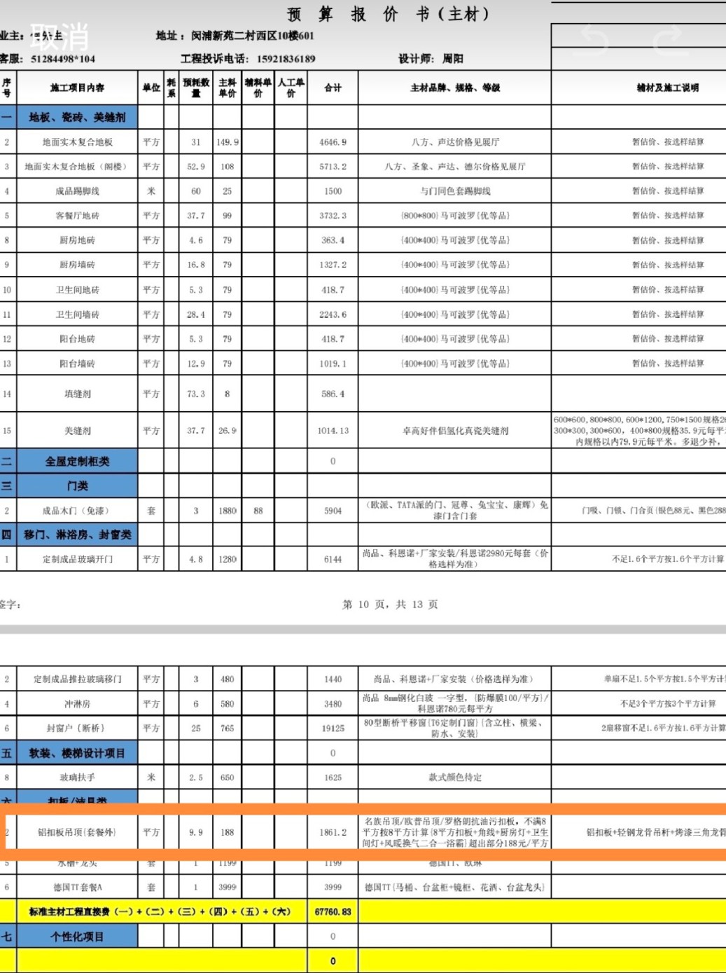 2.?報價清單明確約定,吊頂項目包含8平方扣板、角線、廚衛(wèi)燈具、風暖換氣二合一浴霸等內(nèi)容,且不滿8平方按8平方計價。