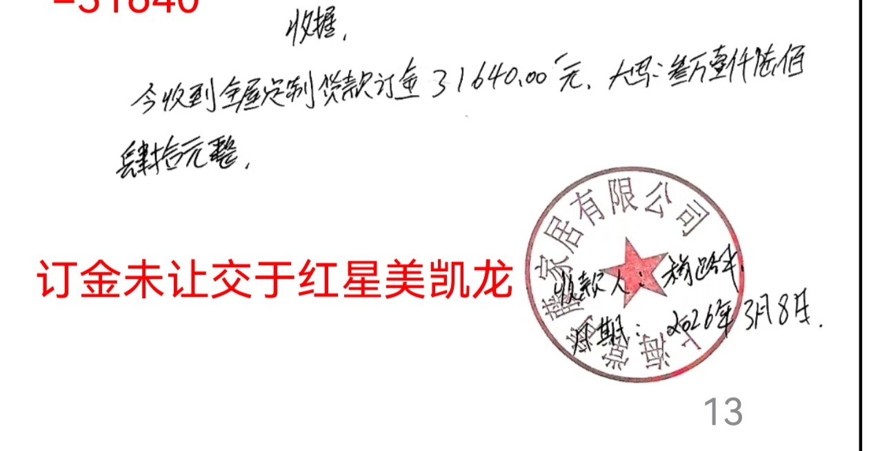 我是閔行區(qū)浦江紅星美凱龍的一位消費者,投訴舉報該商場內(nèi)‘長青藤全屋定制’(備案登記名上海常青藤家居有限公司,經(jīng)營者楊路平)存在嚴重的消費欺*和合同履約問題,拒絕返還我支付的3.26萬元訂金。涉案金額3.26萬元。