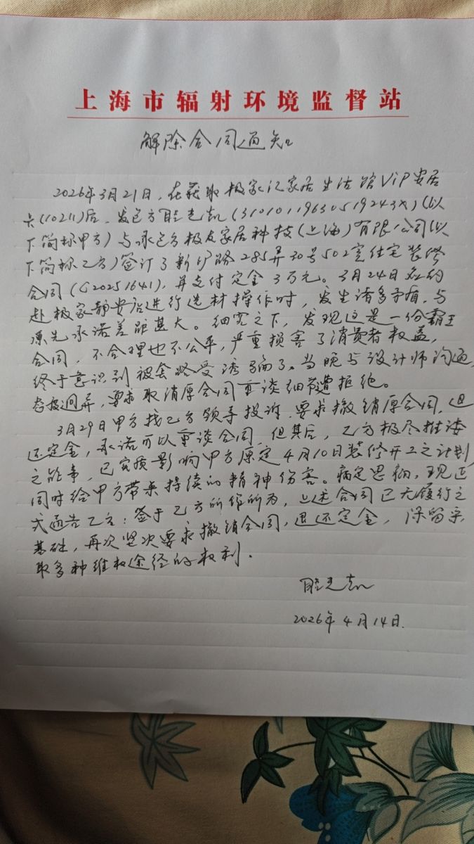 | 投訴類型 | 合同糾紛 | 投訴人 | 眭** | 被投訴單位 | 極友家居科技(上海)有限公司 |