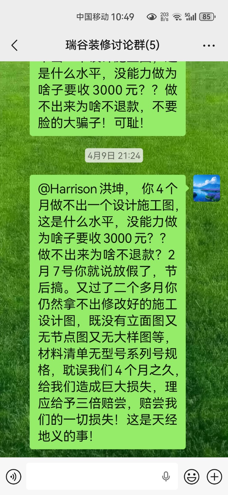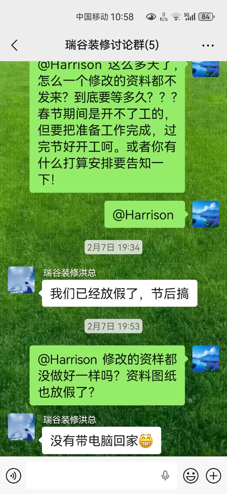 | 投訴類型 | 其它 | 投訴人 | 黃** | 被投訴單位 | 上海瑞谷全案設計裝飾工程有限公司 |