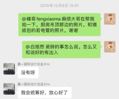 尚海整裝的工程管家和第三方監(jiān)理一起到現(xiàn)場確認(rèn)了需要整改的點(diǎn),整改的的態(tài)度也很積極。對(duì)此我表示滿意。希望今后的工程質(zhì)量和進(jìn)度也能夠得到保持。