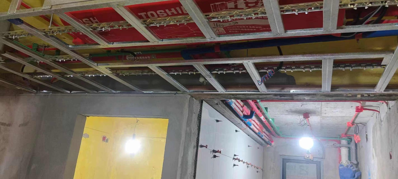 鄧先生家裝修穩(wěn)步推進(jìn),各項(xiàng)基礎(chǔ)工藝嚴(yán)格落地。防水施工均勻涂刷、閉水試驗(yàn)合格,從根源杜絕滲漏隱患;瓷磚鋪貼注重平整度與對(duì)縫精度,嚴(yán)控空鼓率,磚面整潔美觀,質(zhì)感扎實(shí);吊頂采用輕鋼龍骨搭建,結(jié)構(gòu)穩(wěn)固、線條順直,做好防開裂處理,兼顧美觀與耐用。