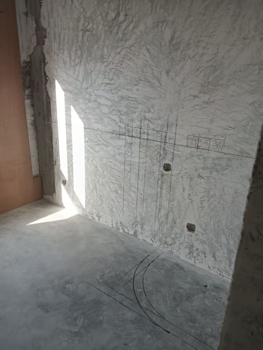 墻面鏟除干凈整潔,電工師傅進場現(xiàn)場放線,水電開槽線條整齊,橫平豎直,每一道槽口都干凈利落,細節(jié)見品質,為后續(xù)施工筑牢基礎,放心托付!