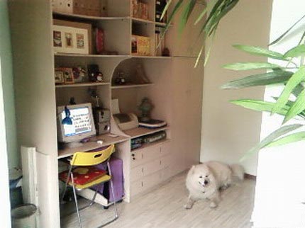 哈哈,下面出場的是我的書房,先來個(gè)從門照出去的樣子,我家的門都是拱形的,別人都說像窯洞嘻嘻,當(dāng)時(shí)做這個(gè)門的時(shí)候也很考師父的手藝哦,做不好,就不能吻合了我選擇的是淺綠色的,好象在立邦里面叫風(fēng)鈴綠。