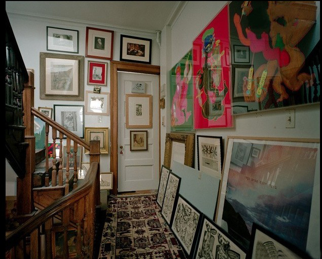 走進(jìn)這個(gè)藝術(shù)工作者的家,滿目驚艷。顏色鮮亮的壁紙和復(fù)古的吊燈成為了房間的主題,皇家風(fēng)格的扶手椅旁擺放各式書籍各類油畫……