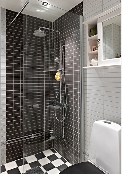 整個衛(wèi)生間的墻身以黑色、白色格子瓷片為主,現(xiàn)代感十足。精心設計好瓷片的顏色和組合,為座便器、花灑、臺盆等均設計了不同的背景,使衛(wèi)生間看起來也風景無限。