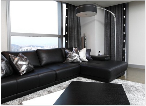 家居中加入別致的落地燈,讓家居充滿樂趣。落地燈可隨意改變角度,人性化的設計,讓生活更加便利。很有質感的黑色皮質沙發(fā)正體現(xiàn)出低調中的小奢華,沙發(fā)窗簾布上銀色鋼圈,為家居空間增添更多圓滑的線條。