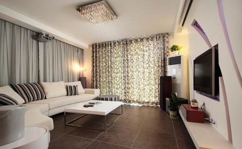 棕色印花窗簾、地磚,搭配白色布藝沙發(fā)與茶幾,讓客廳頓時(shí)充滿了時(shí)尚大氣的美感。同時(shí)也讓家居充滿溫馨的感覺(jué)。
