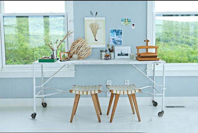 度假屋里的一家什也盡量取材簡潔,這個類似于樹要的茶幾在主臥里顯得別致。充分考慮了屋子主人的生活情趣。