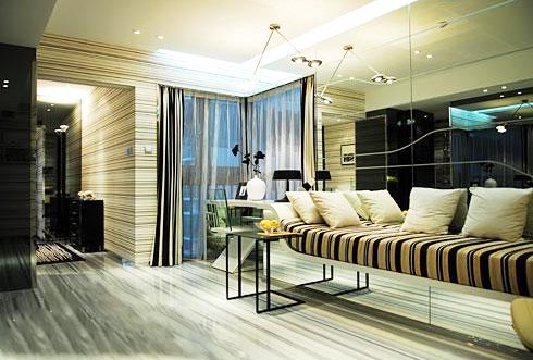 酒紅色就是葡萄酒的顏色,那種醇厚與尊貴會給人一種雍容的氣度、豪華的感覺,所以為一些追求華貴的人所偏愛。沙發(fā)用酒紅色,或在會客區(qū)選一塊老紅色的地毯,會使客廳富麗堂皇。但為不使這種強烈的色調(diào)過于擴張,造成視覺疲勞,可以選用一些黑色的家具,以形成對比。墻面選用明亮的米色,加上一點兒藍、黃的襯托,會使豪華的格調(diào)中增加一些優(yōu)雅與平易。