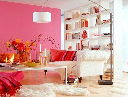 粉紅色給人以溫暖、放松的感覺,適宜在客廳里使用。如地板用柔和的粉紅色,然后在選用同色的布藝靠墊以及粉紅色印花的窗簾,在白色的沙發(fā)、米黃色墻的襯托下,再加點兒淡藍色,就會形成花壇般的羅曼蒂克格調(diào),頗適合年輕人的品位。