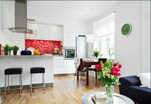 概要: 北歐式的風格里給我們印象多數(shù)都停留在那個陽光滿滿,通眼白色墻面的畫面里。生活如同交響樂有不同節(jié)奏的,或激動高昂,或平靜舒緩,在家居裝修色彩應用中,也不應該太平板單調(diào),這樣很容易出現(xiàn)疲勞感,用一些鮮亮的顏色點綴在白色中,不需太大面積,這樣就能保持生活的整潔?! ∵@個不大的中戶型空間里,廚房及餐桌做在了一個空間里。