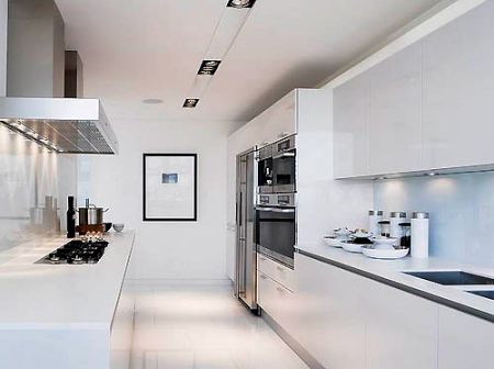 在潔凈的純白色廚房里融入金屬廚房用具,在表現(xiàn)簡約品質之余還流露出前衛(wèi)時尚的氣息。