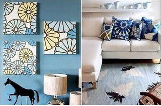 黃、藍(lán)、紫和綠:意大利、法國南部有成片的向日葵和薰衣草花田,一片片金黃、藍(lán)紫的彩色花卉與深綠色樹葉相映襯,呈現(xiàn)出明亮漂亮的顏色組合。因此,在家飾、織品上,很容易看到自然色彩的反映。