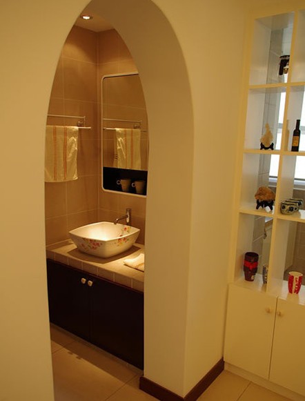 洗漱區(qū)的門洞是特別為業(yè)主而創(chuàng)意出的,這個設計讓你進入洗漱區(qū)體會到休閑放松的情趣,開心快樂的一天從這里開始!同時給予作品最大的張力。