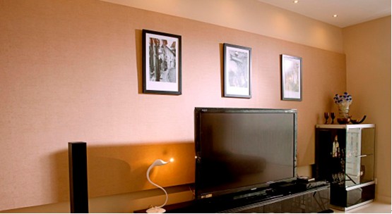 電視墻上的照片用數(shù)量的有序排列來達(dá)到美感,以簡單造意;