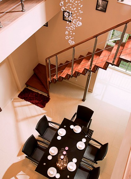 餐廳的燈用數(shù)量來打造餐飲空間的細(xì)膩?zhàn)兓缓谏牟妥?、白色的餐具、下垂的乳白色的工藝燈,簡單而具大手筆;