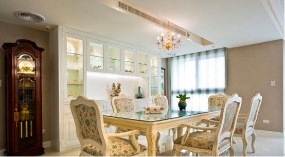 概要: 使用建材:觸控式情境燈光面板、ICI奈米環(huán)保漆、進(jìn)口石材、無(wú)汞噴漆、進(jìn)口高級(jí)壁布、節(jié)能LED盒燈、日立變頻冷暖空調(diào) 本案屋主是一位傳統(tǒng)產(chǎn)業(yè)自營(yíng)商,事業(yè)有成人脈廣闊,住家位居23樓而客廳面寬約10米,其客廳空間自然就朝向接待功能來規(guī)劃,整體以白色古典風(fēng)格打造,並適度輔以人文氣息的設(shè)計(jì)陳設(shè)來代表主人的空間品味。
