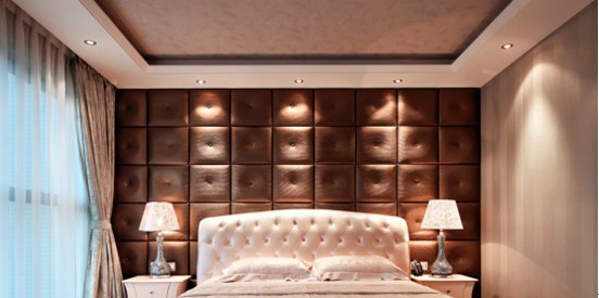 深咖啡色的軟皮包床背景墻、白色的皮床背顯得很時尚霸氣;