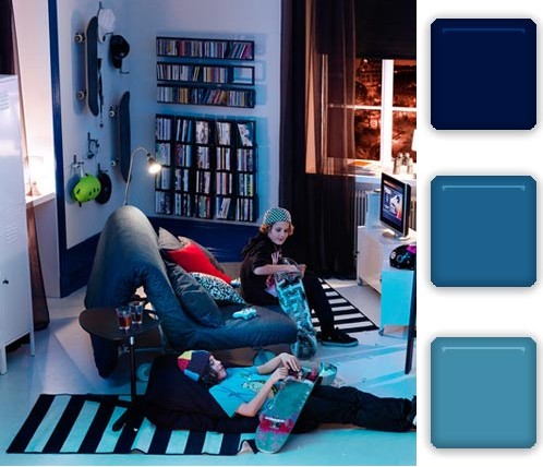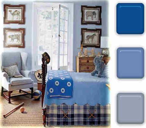 搭配點評:同深淺的藍色運用營造了安靜的空間氛圍,可以使好動的男孩子靜下心來。