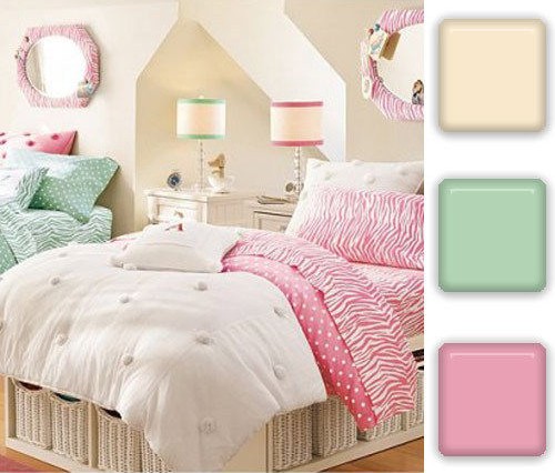 搭配點評:浪漫的淡綠色臥室,采用了同樣顏色的墻壁與床品,打造了可愛、浪漫的風格小空間。