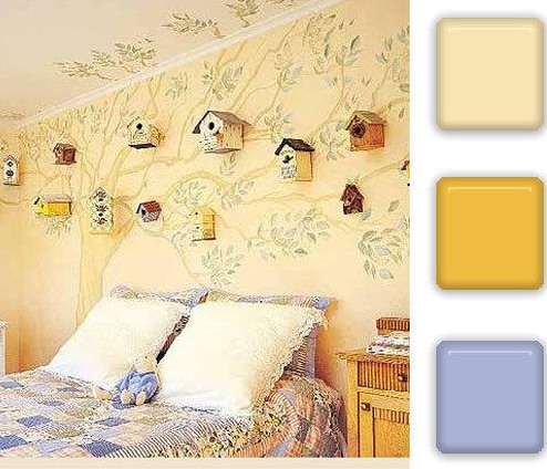 搭配點評:充滿溫馨的色彩,蘊涵著孩子對美好事物的追求和憧憬,采用橙黃黃色整體裝飾的兒童房光線清淡柔和。