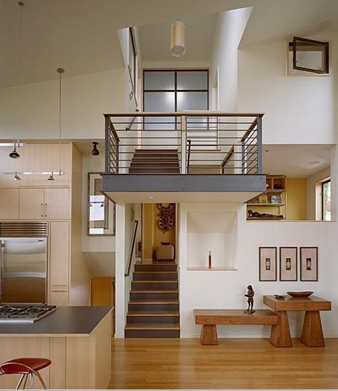 個性化設(shè)計錯層結(jié)構(gòu)的戶型感覺起來視覺通透,空間的立體感增強(qiáng),因此錯層部位的處理尤為重要。