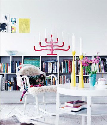 書房最起眼的就要屬這蠟燭了,它代表著寒冷中那點溫暖。木質的桌椅與木質的書柜,還有毛茸茸的地毯都是較為天然的材料,追求天然的氣息是北歐風格在選擇材質上的一個重要特點。