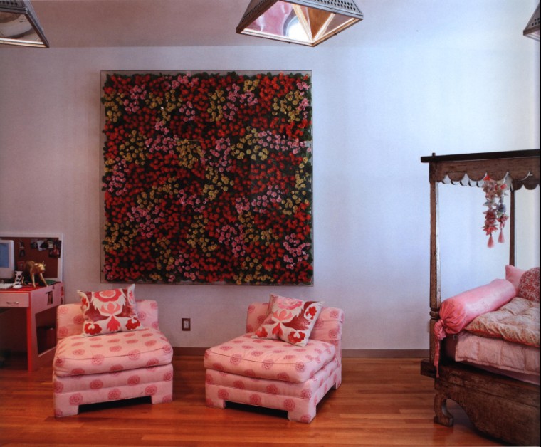 這是一個兒童房的設(shè)計,貼心的矮幾粉色沙發(fā),是某品牌特地為小朋友而打造的。小公主的父母為了小公主更好的生活,極盡其能地打造了這個公主房。兒童房內(nèi)所有的家具都是小小的,小小的復古床,小小的粉色沙發(fā),小小的書桌小椅……從色彩上說,粉色系可以突顯出兒童的天真爛漫,還可以培養(yǎng)小朋友陽光的性格。小公主最愛賴在沙發(fā)上聽爸爸講故事,背后那幅大水晶畫夜晚在燈光的折射下閃閃多彩。粉色的小沙發(fā),也是小一號的靠墊還有粉色的床品。這個都是粉色世界,兒童房內(nèi)大量運用粉色系,也可以增加空間的俏皮感,粉色系調(diào)和著空間的整個色彩搭配,烘托出溫馨還有小小的浪漫氣氛哦。