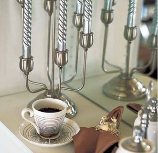 咖啡調(diào)的餐臺也可以有聲有色。深咖啡色勾勒的餐臺框架,搭配銀色的蛋糕托盤、儲物罐和花瓶,看上去典雅而別致。