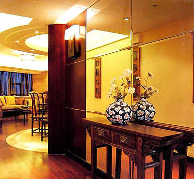 現(xiàn)在大多數(shù)家庭中的玄關。一般在玄關處可配置較大的吊燈或吸頂燈作主燈。再添置些射燈、壁燈、熒光燈等作輔助光源。還可以運用一些光線朝上射的小型地燈作點綴。墻面設計也是玄關的一大亮點。依墻而設的玄關,其墻面色調是視線最先接觸點,也是給人的總體色彩印象。清爽的水湖藍、溫情的橙黃、浪漫的粉紫、淡雅的嫩綠,繽紛的色彩能帶給人不同心境,也暗示著室內空間的主色調。玄關的墻面最好以中性偏暖的色系為宜,能讓人很快從令人疲憊的外界環(huán)境體味到家的溫馨。在設計玄關的時候,不僅要考慮其功能性,還要重視其裝飾性。一盆小小的雛菊,一幅家人的合影,一張充滿異域風情的掛毯,有時只需一個與玄關相配的陶雕花瓶和幾枝干花,就能為玄關烘托出非同一般的氣氛。另外,在墻上掛一面不加任何修飾的方形鏡面,或鑲有木格柵的裝飾鏡,不僅能讓主人在出門前整理裝束,還可以擴大視覺空間。