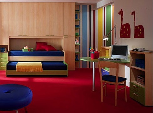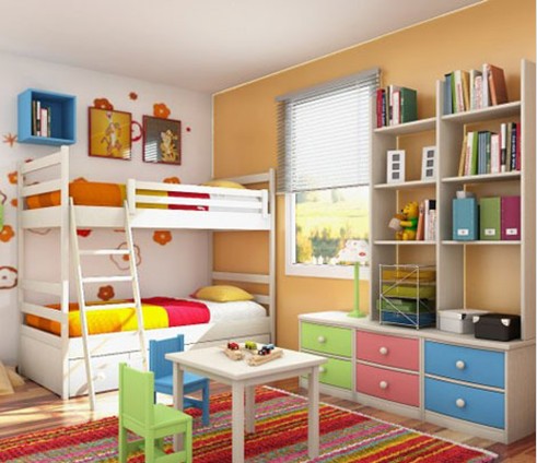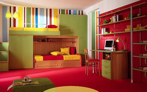 世界在小孩子的眼里是多姿多彩的,因?yàn)槲覀冊(cè)谠O(shè)計(jì)兒童房時(shí)應(yīng)選用活潑的風(fēng)格或鮮艷的色彩。選擇五彩斑斕的色調(diào)打造兒童房,可以有效的刺激兒童的視覺(jué)神經(jīng),使兒童對(duì)形狀復(fù)雜、色彩鮮艷、有視覺(jué)深度的圖案感興趣,可很好的開(kāi)發(fā)兒童們的大腦發(fā)育。