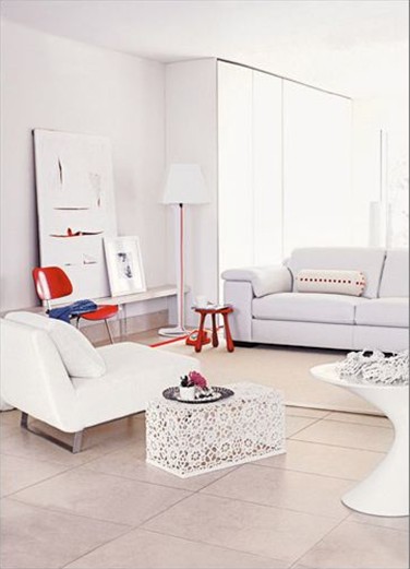 白色是室內(nèi)設(shè)計(jì)的最為重要的色彩之一,它和諧、統(tǒng)一同時又混合了優(yōu)雅、高貴,給人以舒適溫暖的家的感覺。白色可以與任何顏色相配,但是每一種組合的效果和基調(diào)又各不相同,與淺色搭配,精致而浪漫,與原色相配,明亮而熱烈。因?yàn)榘咨哂袕?qiáng)烈放射光線的能力、擴(kuò)大任何現(xiàn)存的光線,它可以使一個房間看上去更明亮。