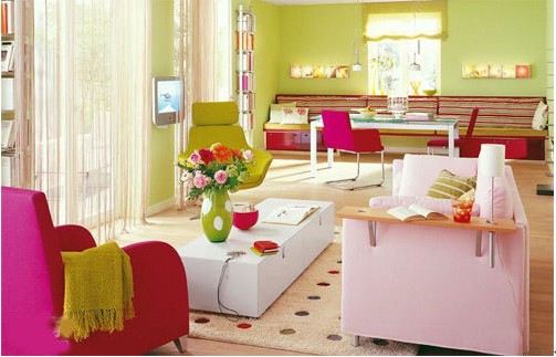 在這樣多彩的室內(nèi)空間里,可感受到一股清新味,居室環(huán)境甜美儒雅,讓你情不自禁的陷入其中,如同吃了塊麥芽糖的甜蜜。居室中不怕色彩多,只要你運(yùn)用好,就能確立風(fēng)格,軟裝色調(diào)的選用至關(guān)重要,巧妙合理使用便可設(shè)計(jì)出精致美家。