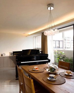 原設(shè)置為休閑區(qū)域的空間更兼具琴房機(jī)能使用,與餐廳、客廳的地域感融合,加大彼此互動(dòng)的關(guān)系。
