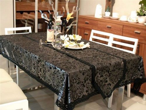 黑色的看起來非常典雅端莊,精美的蕾絲花邊,特顯高檔華麗,看上去質(zhì)量和花式都是相當(dāng)不錯的,這款不僅可以做桌布還可以做沙發(fā)、窗簾、微波爐蓋巾、空調(diào)冰箱等蓋布,看個人喜歡。