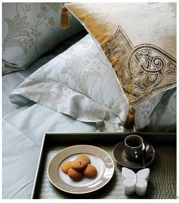 概要: 暖黃色枕頭搭配冰藍(lán)色床品,使涼意瞬間消失。在床上吃早餐,讓臥室氣氛多一份慵懶和隨意。古典床品可塑造出浪漫的法式風(fēng)格臥室,古典的床品款式多種多樣:暗色的花紋圖案、鄉(xiāng)村風(fēng)格碎花圖案或者純色花邊布料,但總的來(lái)說(shuō)顏色應(yīng)該盡量雅致。暗色的花紋圖案床品與鄉(xiāng)村風(fēng)格碎花圖案都是較容易塑造出古典的氣息,而對(duì)于現(xiàn)代感的純色系,則盡量選擇古典風(fēng)格的配飾來(lái)搭配凸顯。