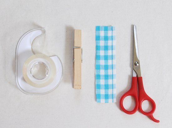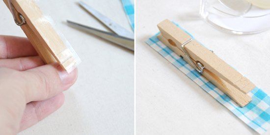 1. 先將雙面膠貼在木衣夾上(小心避免氣泡或皺褶),然后剪去多余的膠紙。