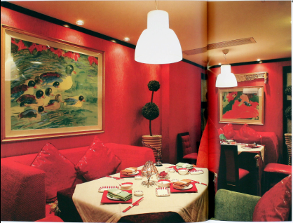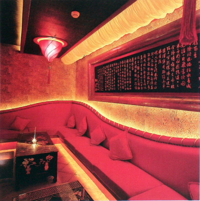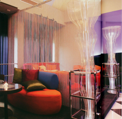 紅色本是最暖的顏色,配冷調(diào)的顏色與紫色需要小心。有兩種好辦法:其一是選偏冷的紅,如玫紅、紫紅,使得藍(lán)色與紫色呈現(xiàn)冷艷的效果,特別適合酒吧等一些娛樂場所。另一方法是以粉紅色配合藍(lán)紫,由于粉紅色是由紅色加白,會比紅色偏冷,加之明度遠(yuǎn)比藍(lán)紫要高的多,就會形成和諧的氣氛。